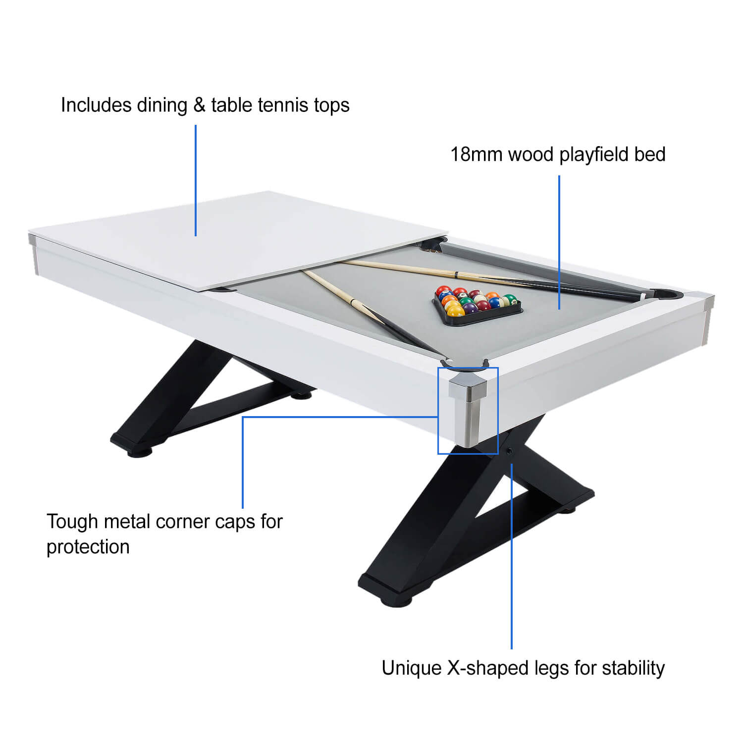 Pureline Pool Dining Table & Table Tennis Top - 6ft/7ft